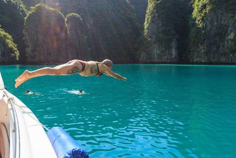Why did Phi Phi Island has been considered a Diamond in the Emerald Sea? Sea, sun, sand, and island are interesting vacation destinations for tourists when they journey to the southern part of Thailand. More than 400 islands surrounding Thailand Andaman Coast mostly are amazing and look like paradise on Earth. These are the reasons why they become great spots for vacation destinations in Thailand. And What is The Best? On the Emerald Sea that is far from Phuket around 45 Kilometer, you will reach Paradise. A lot Of tourists have been visiting this place, gaining precious experience back home and promising themselves that "I will be back to Phuket again". Lets lay down on the beach, swim with sharks, journey along with the colonies of Reef Coral, hang out and find new friends on Crazy Party Night. This is your life when you stay at Phi Phi Island, Phuket.
